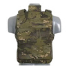 On the front, the vest features a large Velcro panel for attaching ID patches and other accessories. The back of the vest includes special neck protection. The package includes soft dummy ballistic inserts (non-functional).