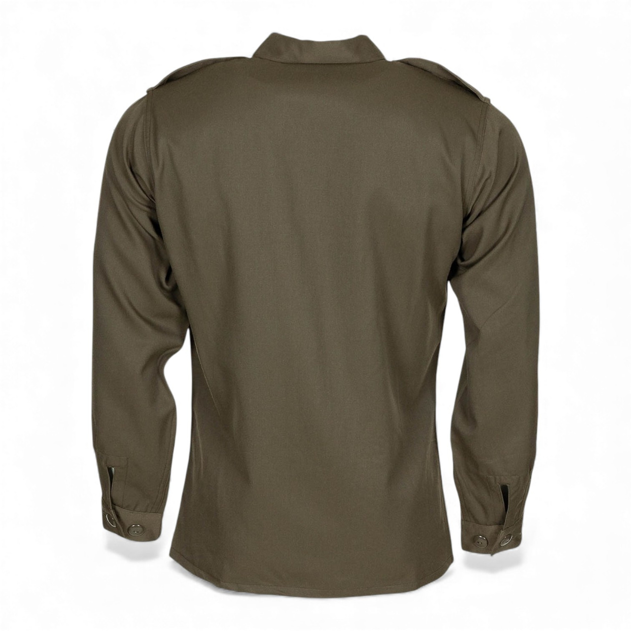These military surplus shirts are made from a blend of 67% polyester and 33% viscose. The shirts feature a smart collar and button-down shoulder epaulettes. There are two buttoned chest patch pockets. The sleeves are adjustable with buttons for a more comfortable fit. Some shirts have velcro patches on the chest and shoulders; due to their surplus nature, these may not be present on all models.