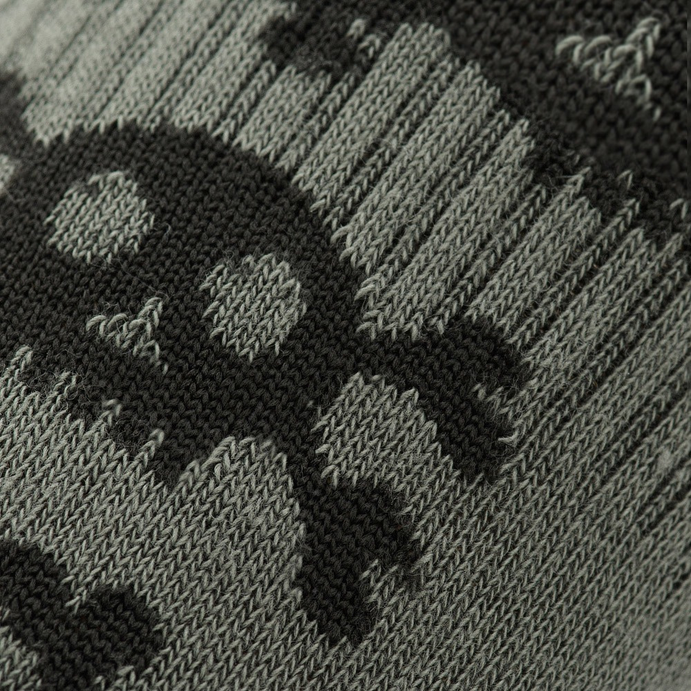 The design of the M-Tac high socks features special thermal zones and shock-absorbing areas on the front of the foot and the heel, transitioning to the arch, which protects the ankle from sprains and mechanical stress. To enhance performance during intensive walking, a lateral arch support has been added, preventing the sock from bunching up in the lower area. The wide cuff distributes pressure evenly, keeping the sock securely in place on the shin.