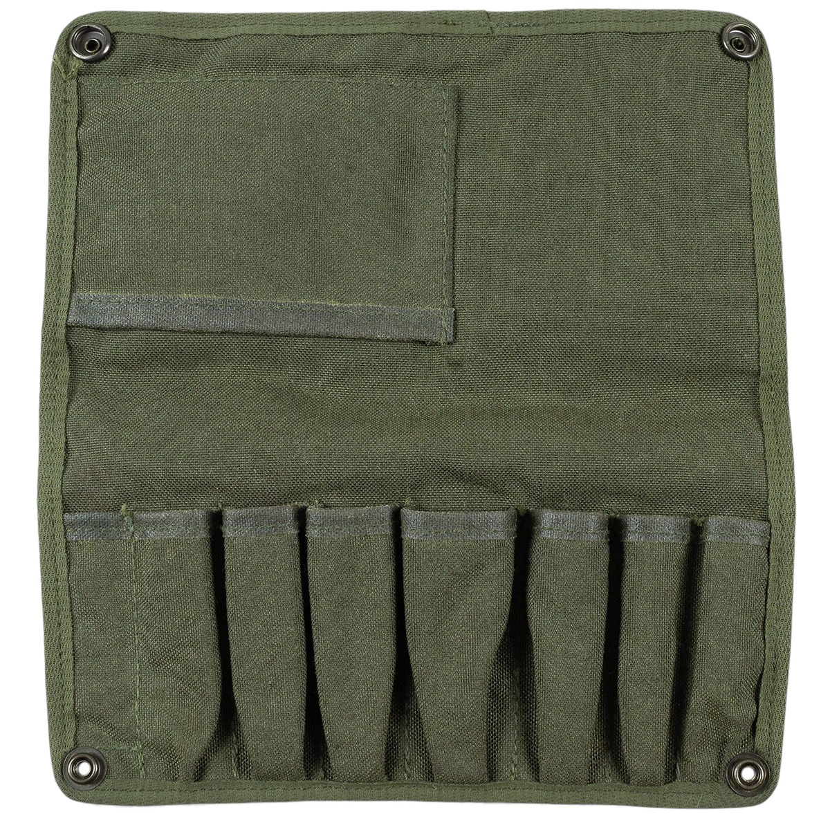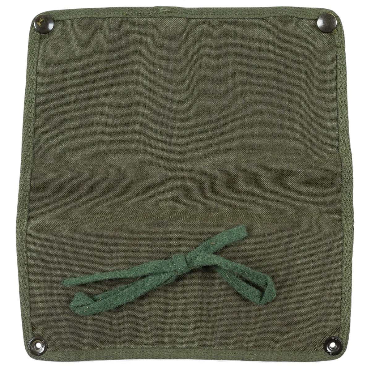 Robust bag made of high-quality canvas for a gun cleaning set, originating from British military surplus. Ideal for transport and storage, in olive green, used, with authentic character.