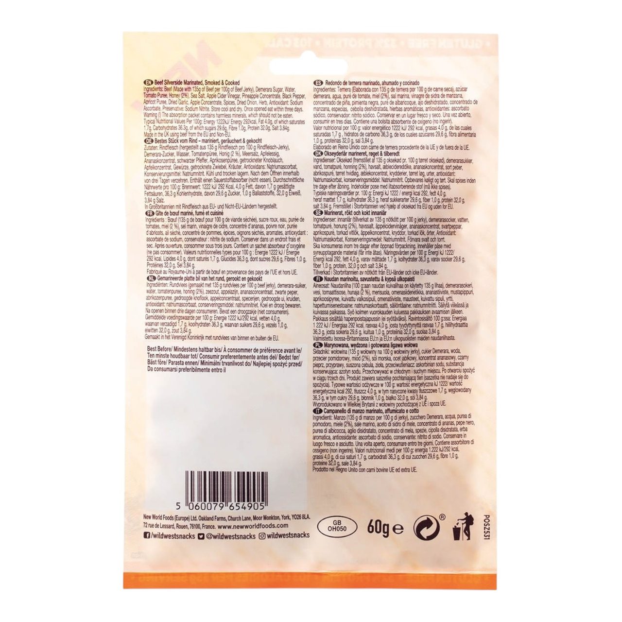 Beef (135 g of raw beef used per 100 g of beef jerky),