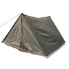 Military AT-type tent (A-frame), sourced from Austrian Army Military Surplus, made from durable material and designed for use in field conditions. The tent consists of two OD green tarps and includes the necessary pegs for setup.