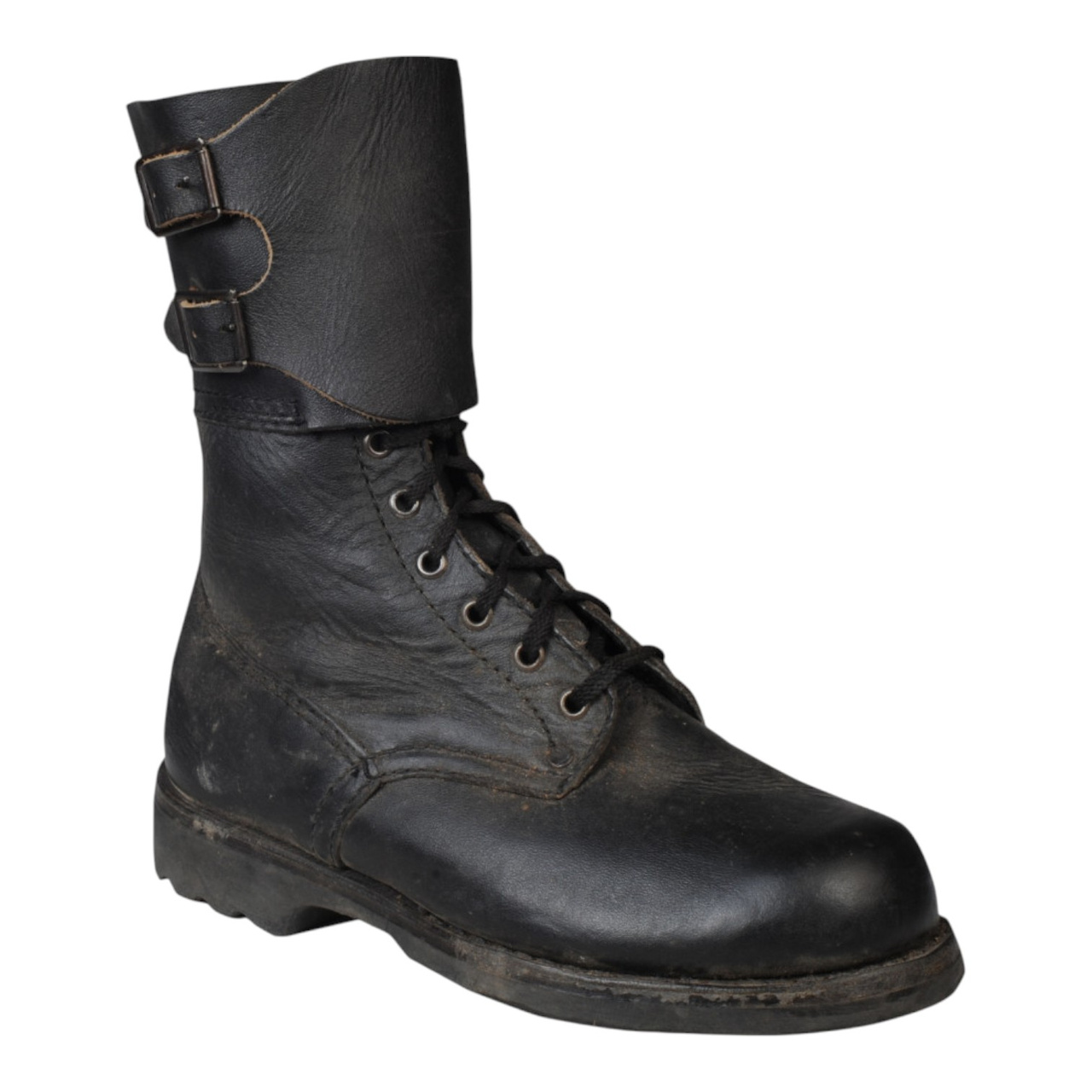 Classic Combat Boots, made of durable leather, with laces and adjustable ankle straps. Sturdy design with a grippy sole, ideal for collectors or outdoor activities. Good condition, rare model, Croatian Army military surplus.