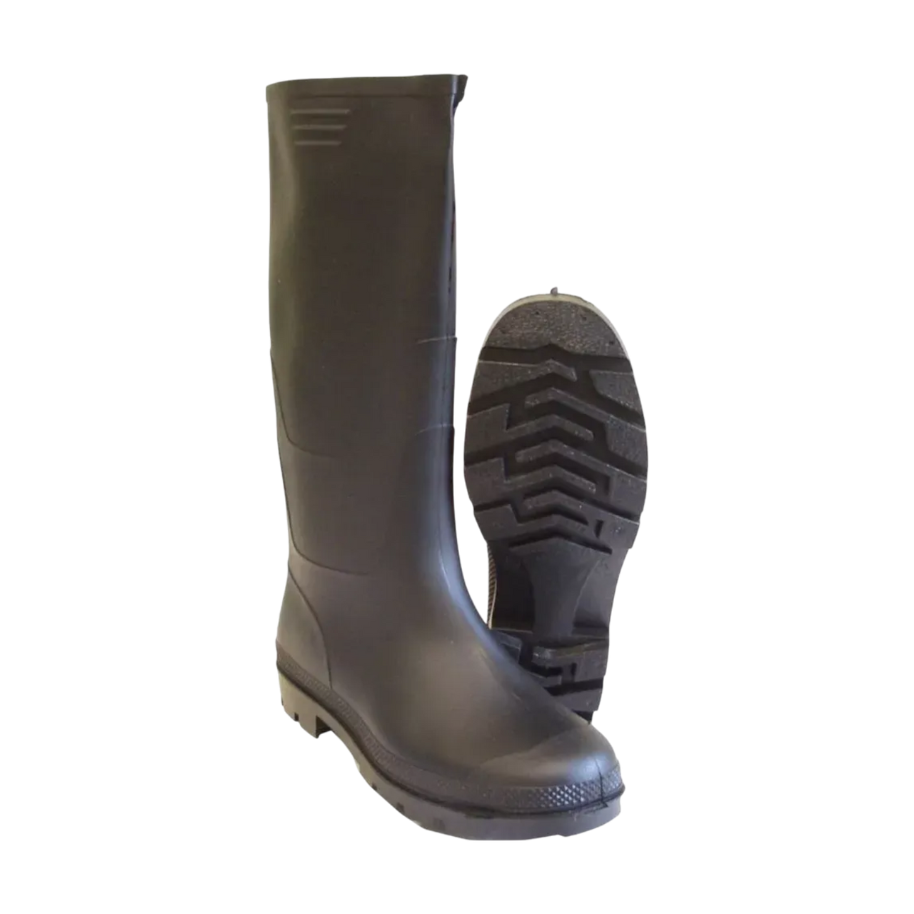The solid PVC sole with a grippy profile provides stability and good traction on slippery surfaces for safe walking. The high cut effectively protects the calf, and the material allows for quick and easy cleaning.