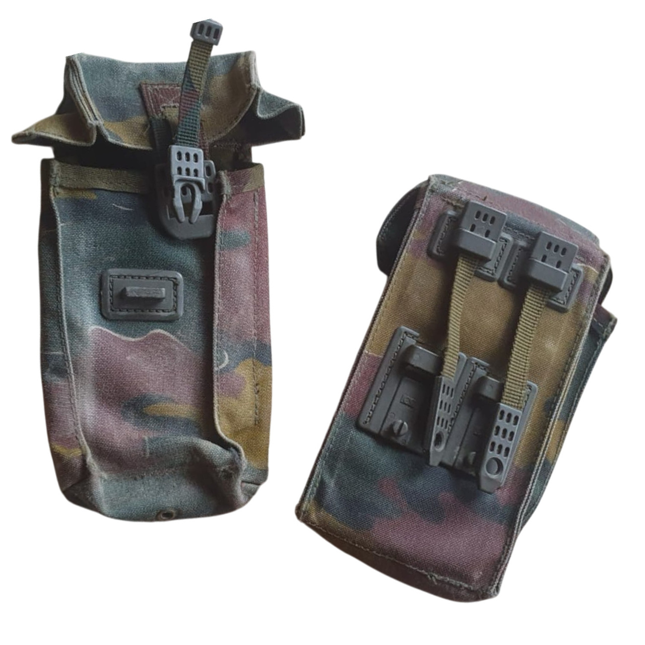 This authentic Belgian Army ammo pouch features a double compartment design for efficient storage and quick access to your ammunition. Crafted in genuine military camouflage, it offers reliable durability and practical use in the field. Ideal for collectors, reenactors, or tactical enthusiasts.